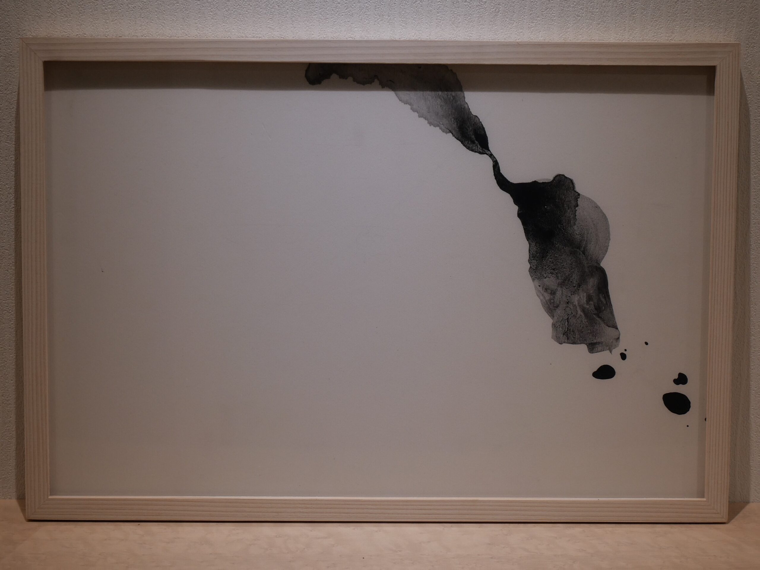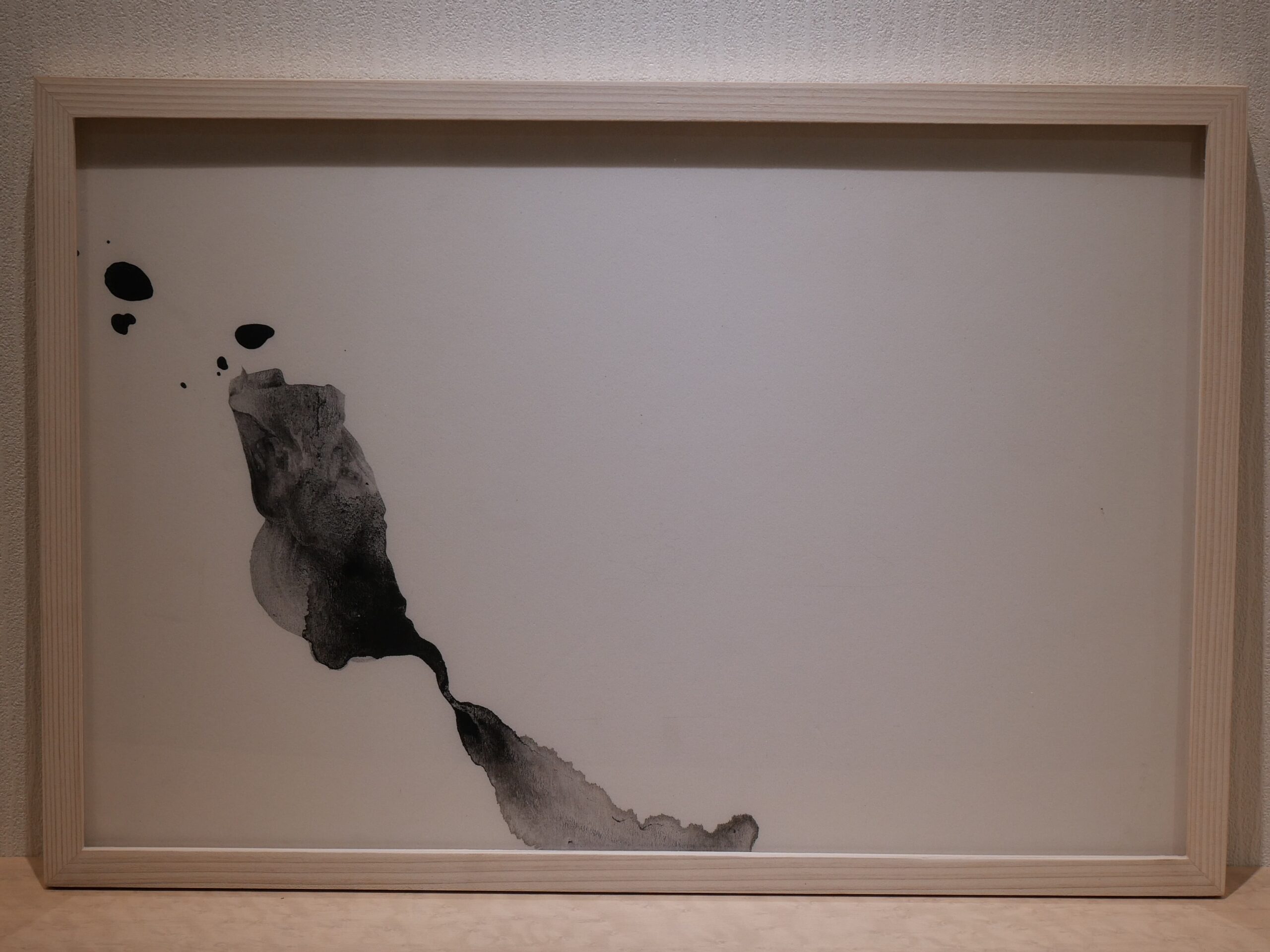 他者との共鳴、共感を軸に贈る言葉より共鳴する言葉を綴る。その後、ペンを筆に持ち替え、静寂の白に息づく黒の世界、静と動を兼ね備えた作品制作に取り組む。文字の域を超えた奥にある叫び、問いかけを心に持ちながら。
