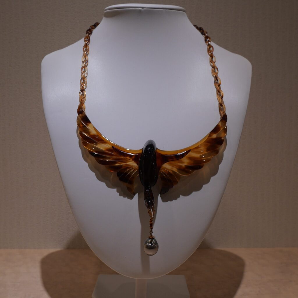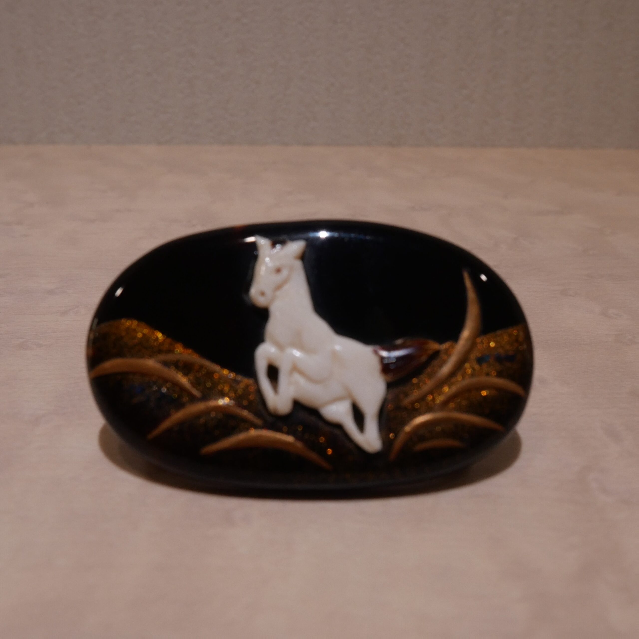 初代亡き後、河端べっ甲を継ぎ独自の技術を追求し象嵌など他素材と鼈甲を組み合わせた作品が評価される