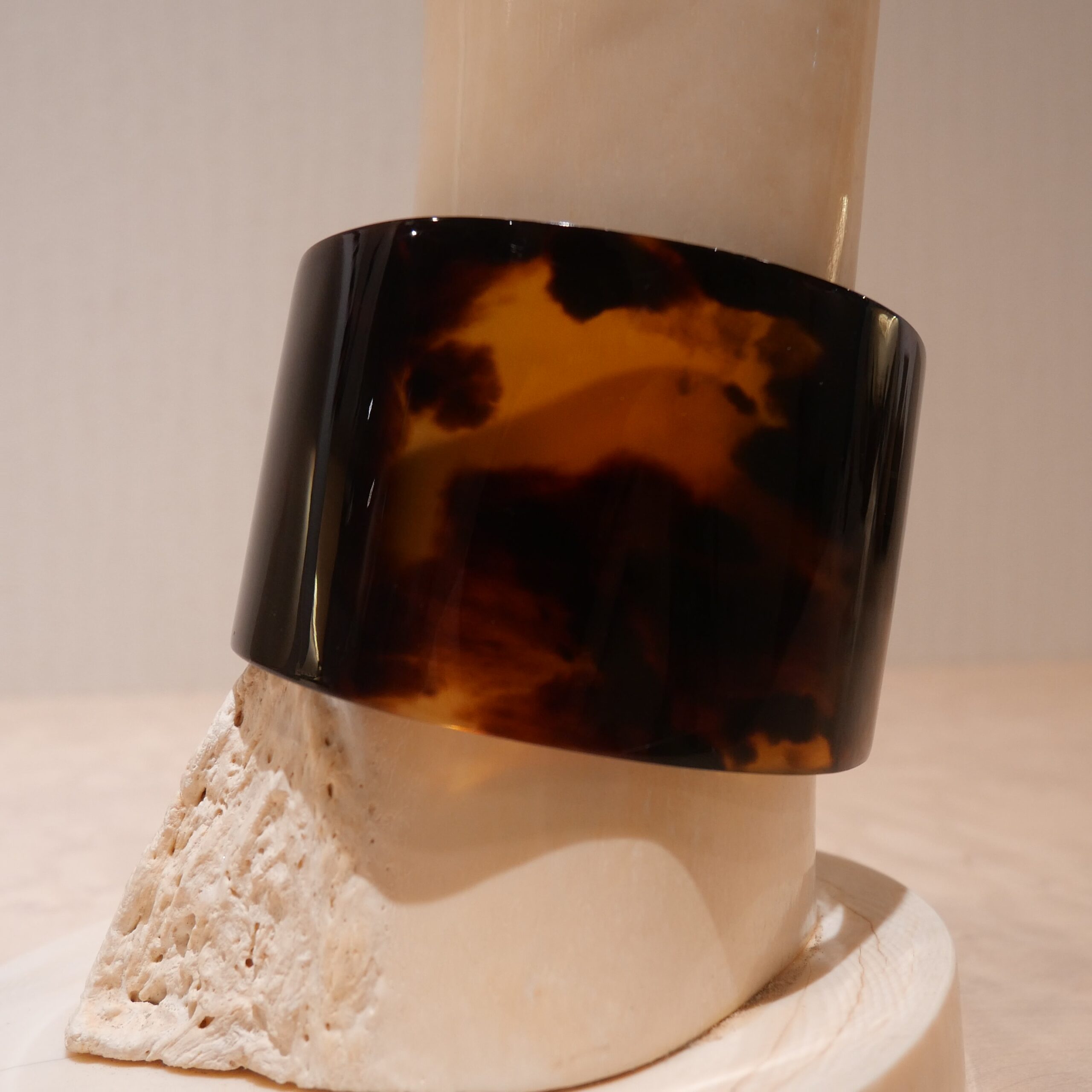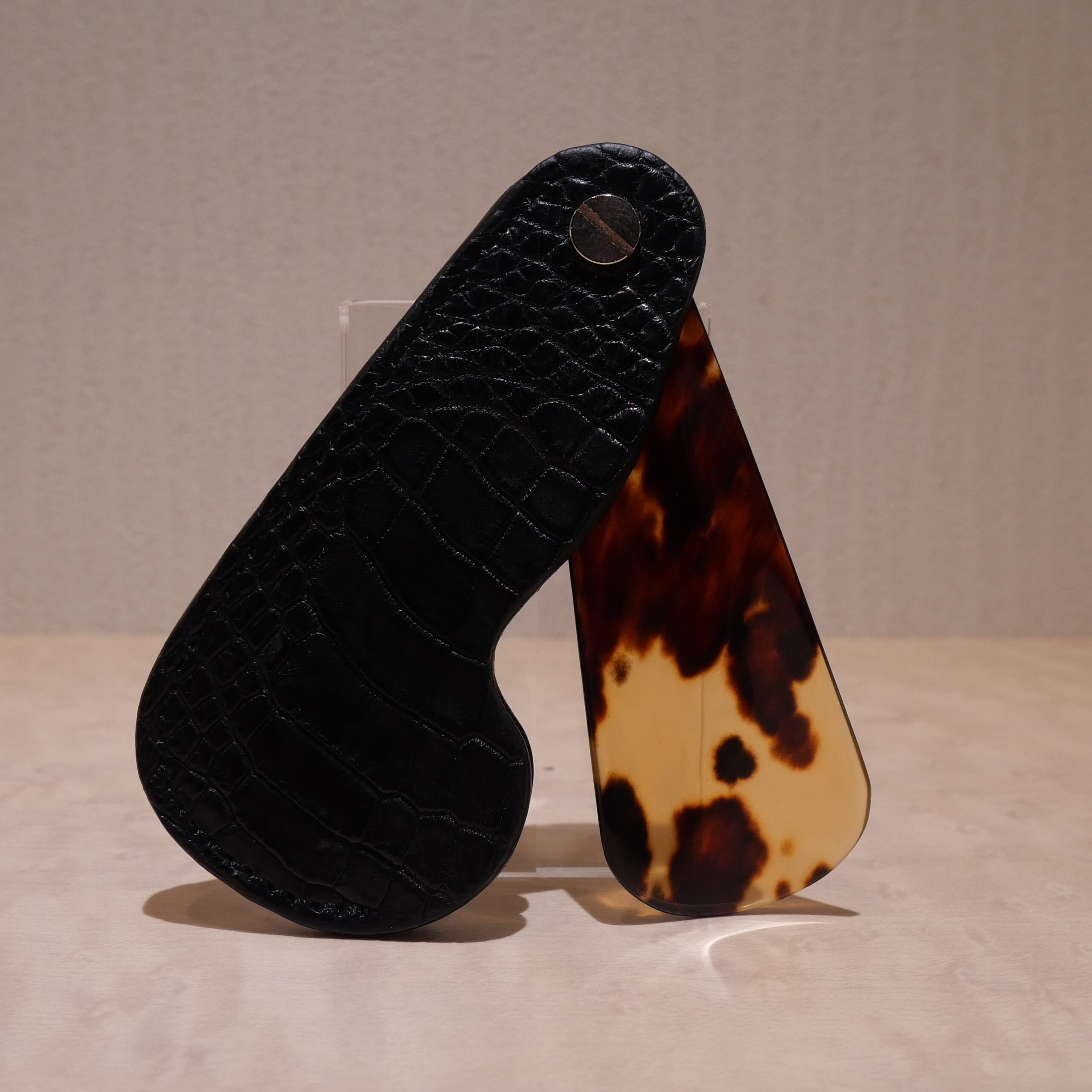 鼈甲(べっこう)業は約400年におよぶ歴史をもち、奈良県にある東大寺の正倉院にも鼈甲を使った宝物が残っているなど非常に古くからある伝統工芸産業です。 原材料となるのがカリブ海、インド洋の赤道付近に生息するタイマイというウミガメの甲羅で、大きいものは全長180cm、体重200kgにもなります。 タイマイは絶滅危惧種としてワシントン条約以降国際取引が禁止され1993年以降は全面輸入禁止となっています。 現在流通している鼈甲はワシントン条約前に各職人が仕入れた材料です。 もともと東南アジアやカリブ海周辺の国や地域でタイマイは古くから食用とされており甲羅は破棄していたそうです。 食用として捕獲された後の甲羅を再利用する。そんな無駄のないサイクルが確立されていたところ、一部の悪い人たちが高価に取引される鼈甲や象牙に目をつけ密漁、 乱獲し保護の対象になった経緯もあります。 現在は国と都が江戸鼈甲伝統工芸の保存を目的として石垣島でタイマイの養殖に成功し材料の安定確保が可能になり始めています。 鼈甲細工の工程は、甲羅から生地を切り取り、製品の形と柄の位置を決めて切り出した数枚を水と熱で貼り合わせます。この貼り合わせの際の湿らせ方や温度、 圧力の加減などが仕上がりを左右するため、長年の経験と熟練がものをいいます。形を整え、最後に磨きあげて仕上げます。 櫛(くし)や簪(かんざし)など和装に合う伝統的な装飾具や三味線の撥(ばち)、 眼鏡のほかデザイン性を高めた現代のアクセサリーまで天然の鼈甲の艶と肌触りは幅広い世代の方に愛用せれています。