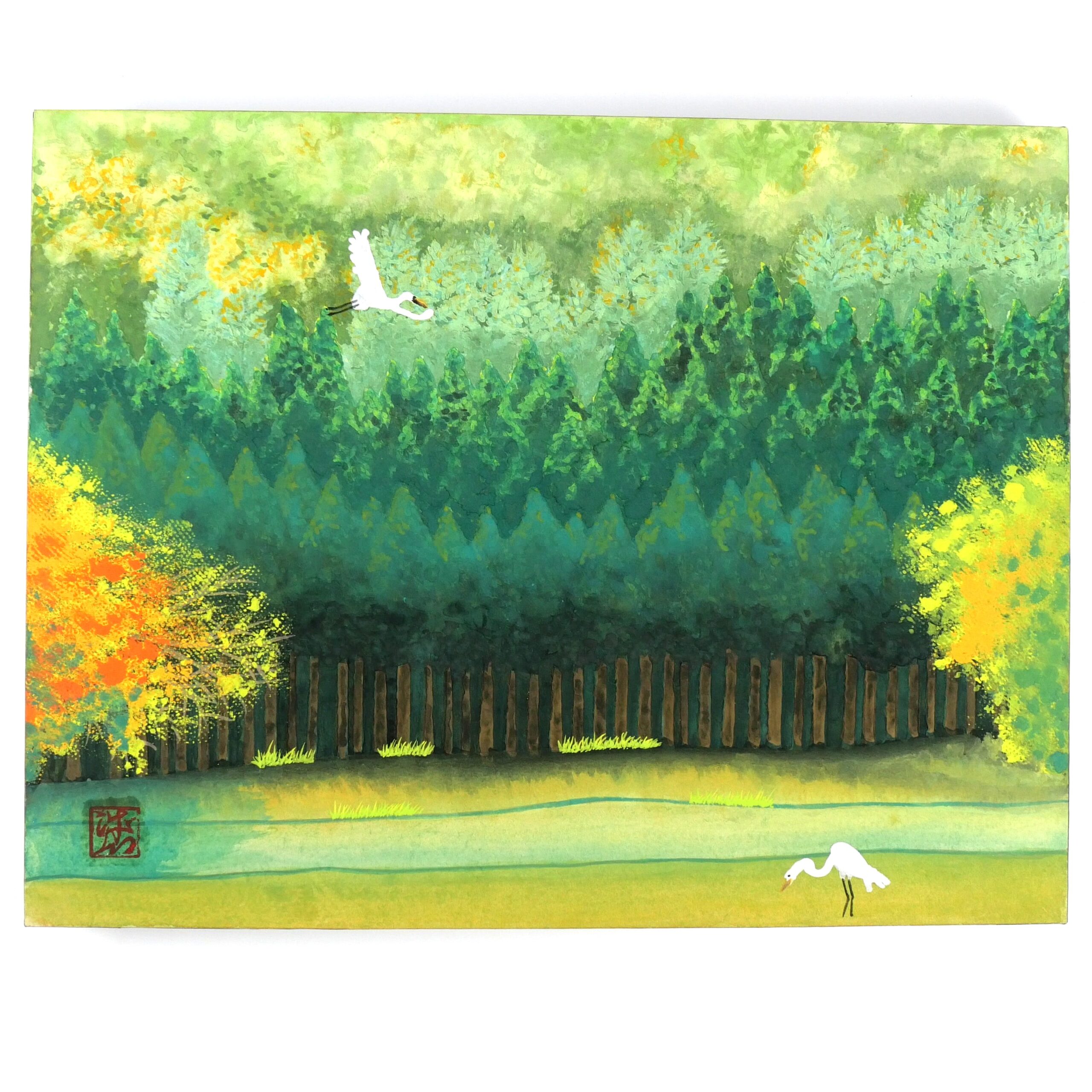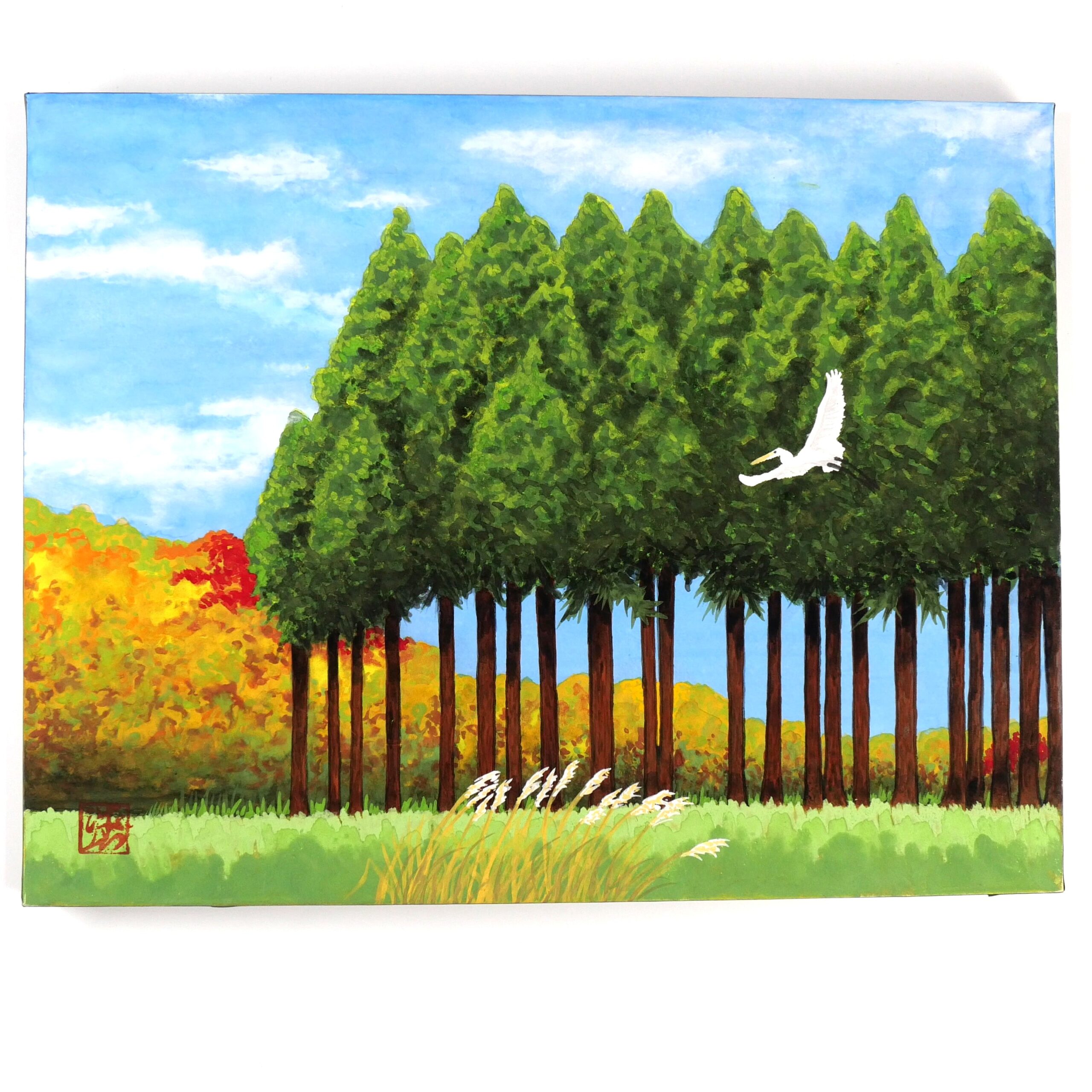秋風と杉並 サイズ:F6(410×318) 素材:和紙パネル